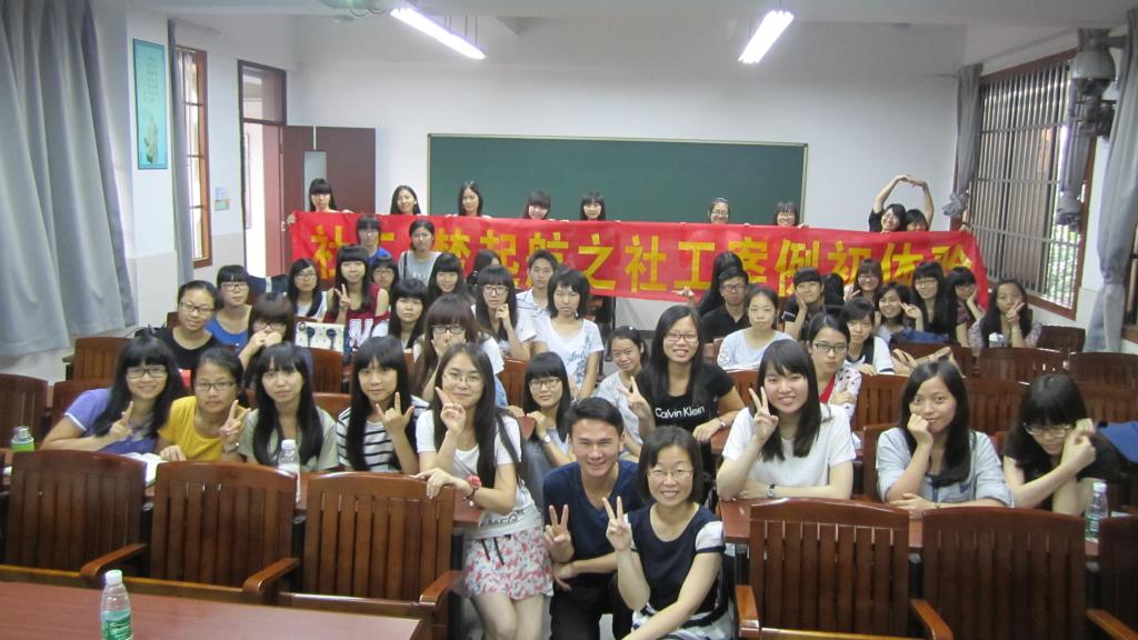 袁美芝社工与学生们分享了各种不同方面的案例,例如她的第一次接手的案例——挽救一位喝止咳水又酗酒的失业的青年,例如她所组织过的各种的小组活动,等等。通过这些分享,学生们学到了课本上没有的、课本上无法用言语表达的更为实用的知识,这些真实的案例由亲身经历过的本人说出来,似乎别有一番风味,显得更加打动人心,学生们虽然没有亲身经历过,却仿佛都“身同感受”般,有自己的思考,有自己的想法。