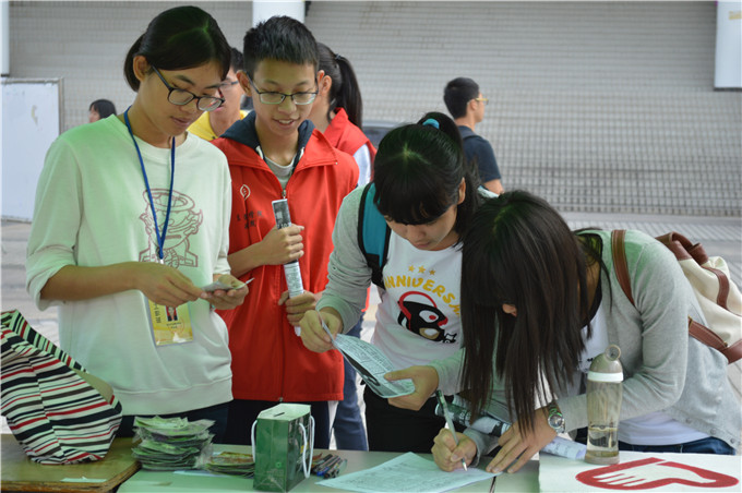 这天,虽然有很多部门都同时进行活动,但是通过干事们卖力地宣传,大量的同学都被图片展所吸引了。当然,负责讲解干事们也不甘示弱,他们凭借着灿烂的笑容和生动的讲解,获得了同学们的连连称赞。负责调动的干事们就更加投入了,整个活动期间他们基本没有休息过,奔波于宣传与讲解处人流之间的调动,这保证了整个活动流程的顺畅自如。干事们的努力也得到了欣慰的回报,几张报名表都被填的满满的。虽然这天我们吸引了很多同学报名,但我们相信,这还是不够的,家工作营招募工作仍在继续。
