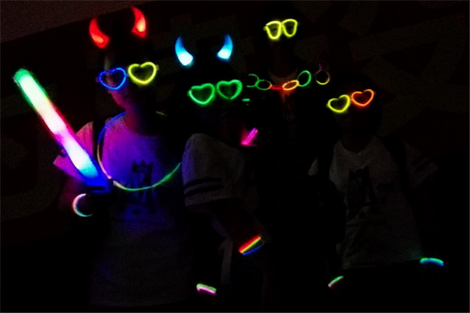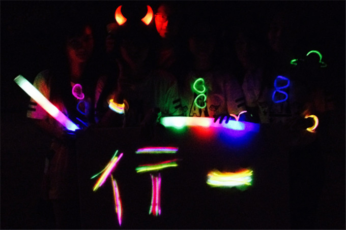 夜跑停止后,同学们纷纷拍照留念,其中有邀请路人的盛情合影,也有各种用荧光棒拼凑的富有创意的合照。