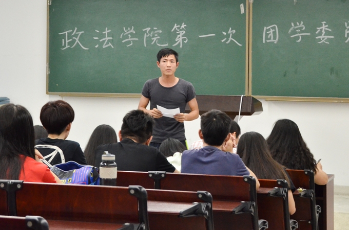 9月2日晚7:30,政法学院第十五届团学组织第一次委员例会在经管楼316室召开,辅导员老师钟丽华、团总支第一副书记袁智勋、学生会主席叶创新及全体团学组织委员出席了本次会议,本次会议旨在对新一届团学组织今后一年的工作进行安排与展望,对于新一届团学组织的发展具有重大意义。
