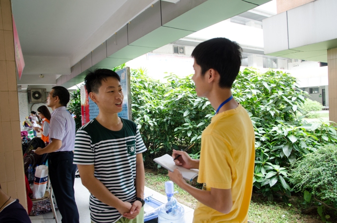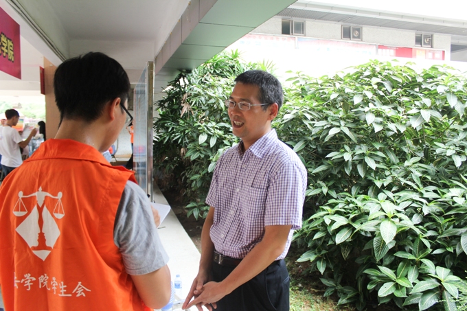 9月9日早,政法学院13级的大二志愿者们以及14级的新生骨干们很早便已等待在位于莞城校区五号楼的政法学院迎新点准备好在今天迎接新生,等待着政法学院新一拨新力量的到来。政法学院党总支书记潘荣新、辅导员邓磊老师、刘海波老师出席了政法学院的迎新活动并对迎新活动做出了指导。