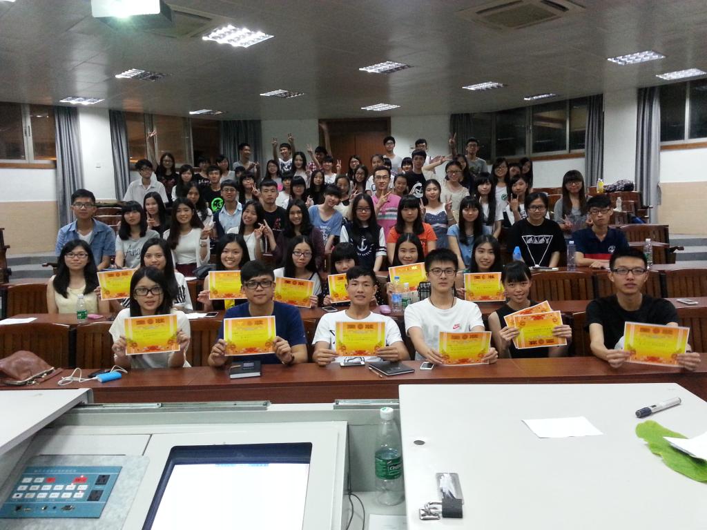 欢送会在轻松、愉悦的氛围中开始。每个部门都进行了有趣幽默的部门展示。而在部门展示中间还穿插了不同的游戏环节,干事们都玩得十分开心,炒热了气氛。接下来,我们进行了一年一度的“每年之星”颁奖,给每个书记和每位部长及副部长颁奖各个部门的干事分别给自己的部长宣读了颁奖词,表达了自己对部门和每个同伴的感谢之情。各个书记和部长总结了这一年的工作,分享了一些自己的看法和建议。第一副书记叶灏彬师兄分享了自己的工作经历,鼓励干事们积极参加学生工作,同时对团总支表达了自己的不舍,希望团总支能越做越好。最后,欢送会在团总支全体成员齐唱《最美的太阳》中落下帷幕,大家来合影来铭记这一个难忘的时刻。