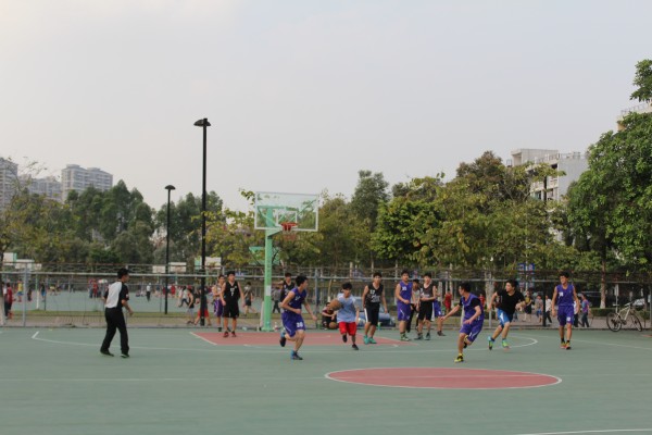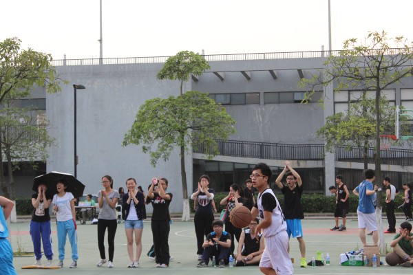 下午4时,比赛正式拉开帷幕。一号场地为“任队”对战“淫战行动”队,一开场双方队伍势如破竹,你追我赶,赛场不分上下,比分一度持平。比赛进行到第二节,“任队”队员黄志豪因比赛碰撞受伤,仍执着坚持打完第二小节后下场休息。下半场比赛开始,双方队伍迅速进入赛场状态,强强对决。随后,“任队”开始抢占先机,步步为营,连续夺得几个2分球后,“任队”士气大振,一鼓作气进攻,越战越勇。而“淫战行动”队亦是不乱阵脚,配合默契。最终,“任队”vs“淫战行动”比分为55:46,“任队”胜出。