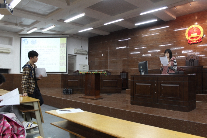 4月2日晚上8点30分,政法学院学生会学习部在6c103课室进行了模拟法庭的演员面试。模拟法庭是政法学院经过申请进入了学校第九届科技学术节的学院品牌项目,主要是通过模拟法庭审判程序的形式为全校师生提供一个学习法律的平台,同时可以提高他们的法律意识和促进和谐校园的建设。