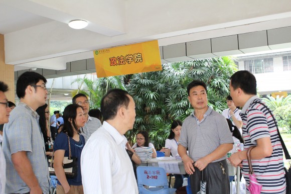 政法学院的领导们亲切看望了现场的新生骨干和志愿者,了解了现场的迎新工作。他们逐一询问现场志愿者和助班新生的报到情况,对参与迎新工作的师生表示鼓励和感谢,并且对今年迎新工作中精简了工作流程、进一步节约了新生的时间给予了充分的肯定。在视察途中,政法学院的领导们亲临现场与新生家长亲切交流,耐心地对新生报到中的疑问进行解答并勉励新生们刻苦学习,立志成才。随后,他们详细地向同学们了解生活学习环境的改变给同学们带来的一些困惑,并耐心地向同学们解答问题。