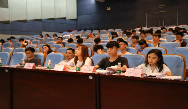 在莞城校区学术报告厅举行2018级新生职业规划大赛决赛。党总支副书记丘永辉,辅导员邱可荣,职业规划讲师团董可师姐,王梓钊师兄,钟洁梅师姐担任本次决赛的评委。王祥宇师姐主持本场决赛。