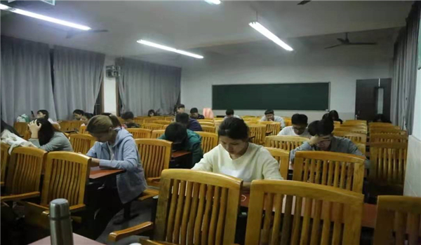 活动伊始,主持人宣读比赛规则,维持现场秩序。紧接着,同学们自觉保持安静,扫码进入答题环节。答题期间,现场秩序井然,同学们聚精会神,把储备的知识挥洒在题目上,争取为小组取得高分。期间,现场工作人员恪尽职守,做好监督工作。