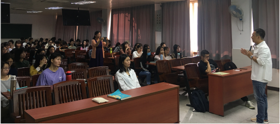 谢慧龙老师在东莞广播电视台从事一线新闻采编工作长达16年,多次参与东莞重大事件新闻策划采编工作,擅长在新闻现场沟通协调及全方位挖掘选题等能力。谢老师结合采编工作,将他参与过的新闻背后的故事娓娓道来,例如东莞共享单车、东莞援鄂医疗队、东莞公办学校午托的取消与恢复、东莞南城临停车辆计时收费等,尤其是重点讲述了今年5月初受到全国关注的虎门大桥事件的报道案例,引起了同学们极大的兴趣。谢老师从媒体融合的传播特点出发,探讨在面对公共事件时,新闻舆论工作如何强化阵地意识,回应社会关切,公开发布信息,积极引导舆论,体现媒体的责任担当和社会价值。