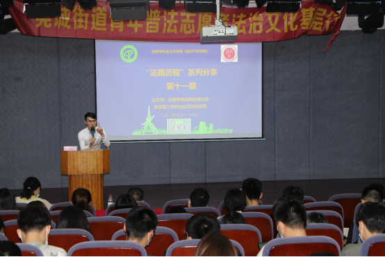 (知识产权学院)法律系主办的第十一期“法路历程”系列分享在莞城校区图书信息中心负一楼小剧场举行。主讲嘉宾是广东权晔律师事务所合伙人周键涛律师。周律师具有国内和海外管理学和法学复合背景,曾就职于大型投资银行及PE投资机构,擅长私募基金投资、企业资产重组、新三板及主板投资银行业务及大型商事纠纷案件,有丰富的法律实务经验。本次分享由法律系副主任吉海荣老师主持。
