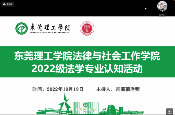 (知识产权学院)法律系于10月13日下午举办线上2022级法学专业认知活动讲座。本次讲座由法律系副主任吉海荣老师主持。