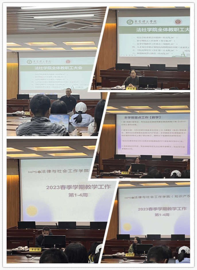 在莞城校区模拟法庭召开全院教职工大会,会议对学院近期重点工作进行部署。全院教职工参加了会议。