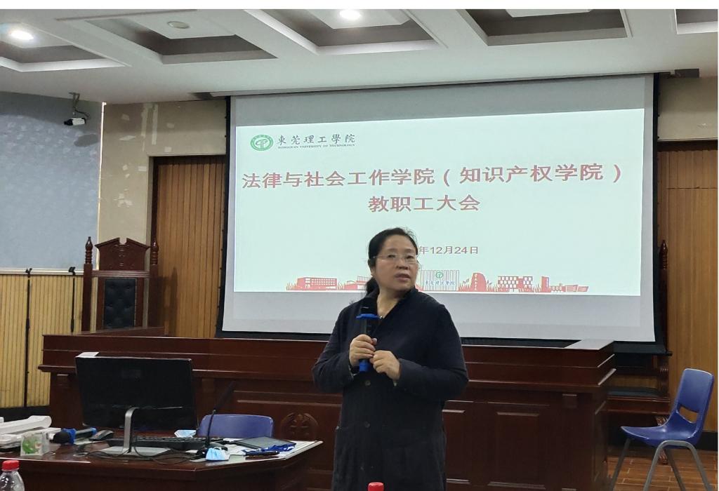 大会第一项议程是院长郑玉敏教授进行学院工作总结。她指出2020年是充满困难和挑战的一年,也是法社学院快速发展的一年。2020学院学科建设和人才培养工作亮点纷呈:社会工作成为学校文科院系第一批硕士点单位;社会学和法学成为学校重点建设的骨干学科和特色学科;重点建设社会工作专业和东莞知识产权学院;学院招生人数显著增加;人才培养模式改革显著推进;知识产权专业顺利申报;省部级科研立项增加较快;学生竞赛成绩又有突破;社会服务空间进一步拓展。同时郑院长也强调2020年学院工作存在着进步的空间,鼓励全体老师在新的一年齐头并进,助力学院发展更进一层楼。