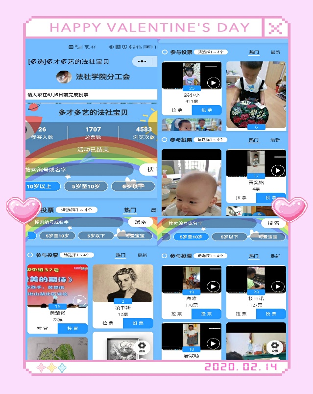 为庆祝2021年“六·一国际儿童节”,法社学院分工会筹划为学院教职工子女们组织一次庆“六·一”活动。由于疫情防控要求,分工会决定组织开展孩子们的线上才艺展示活动。