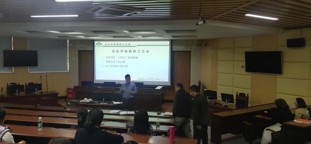 会议第三个议程,由黄俊辉博士作学院分工会的年度工作报告和财务报告。今年由于疫情原因,分工会外出活动受到影响。负责分工会工作的各位老师仍通过各种形式为老师举办各种活动,如六一儿童节的萌娃比拼活动、微信运动步数大赛等。老师们也确实感受到了来自分工会的人文关怀,对分工会委员会的各位老师的付出表示感谢。