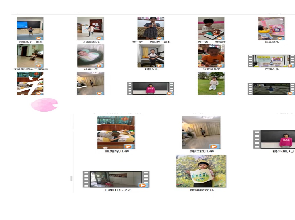 法社学院的教工子女们纷纷积极参与,孩子们通过视频展示了多种多样又充满童趣的技艺:大孩子们展示了钢琴、二胡、长笛等乐器演奏,绘画设计、唱歌朗诵、烹饪技能、篮球跳绳等等,小宝贝们也展示了各种可爱的小技能。