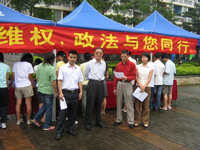 6月14日下午,由政法系主办,政法系学生会、法学会承办,以“关注大学生就业,共创法律维权天空”为主题的大学生就业维权普法宣传活动在下沉广场展开。本次普法宣传活动获得了政法系各领导的重视,政法系系主任李洪君教授,政法系党总支副书记潘荣新老师,政法系辅导员吴进老师、陈晨老师,政法系学生会主席罗志凯等参与了此次活动。