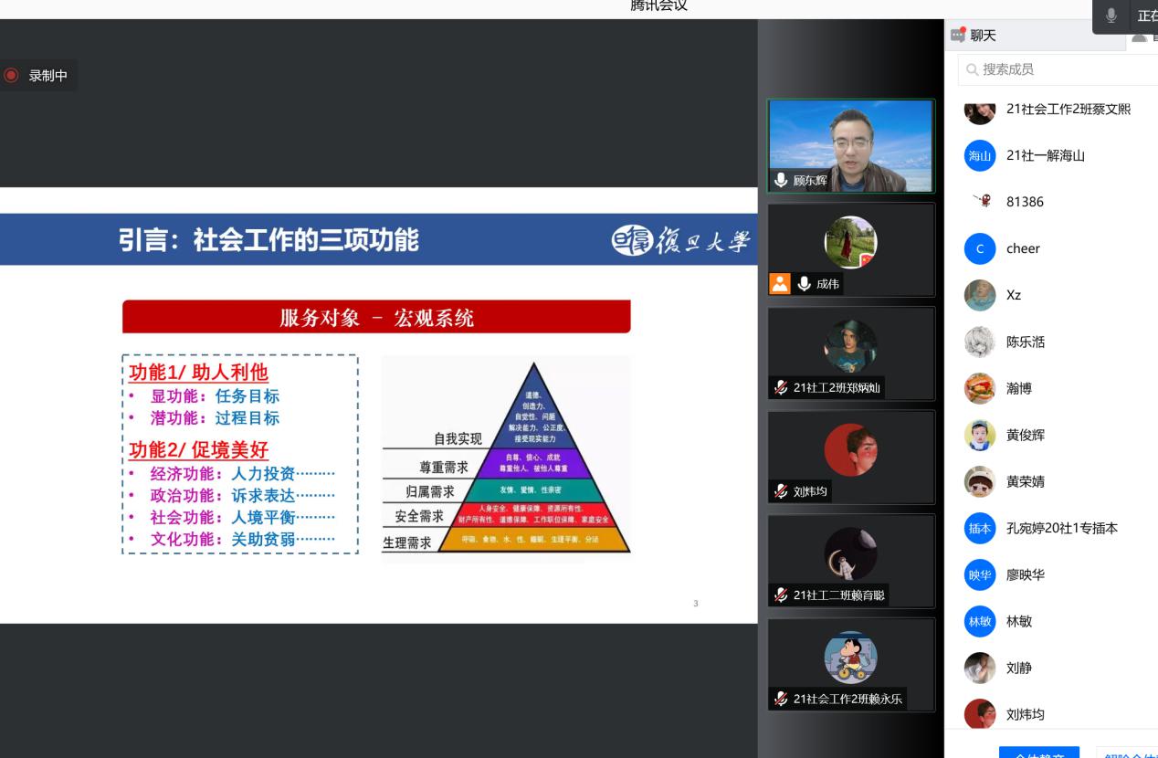 社会工作系广大师生所做的精彩报告,顾东辉教授的讲座启发了教师社会工作研究的方向、激发了广大学生的学习的内在动机、指明了一线社会工作服务和评估的道路,使各方都受益匪浅;并期待疫情过后顾东辉教授能亲自莅临麻豆