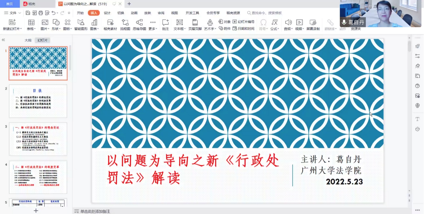 (知识产权学院)法律系于腾讯会议举办线上“法路历程”系列讲座第二十期。本期讲座邀请了广州大学法学院副教授、法学博士、硕士生导师葛自丹老师,为我们讲授“以问题为导向之新《行政处罚法》解读。”本期讲座参与人数达五百余人。