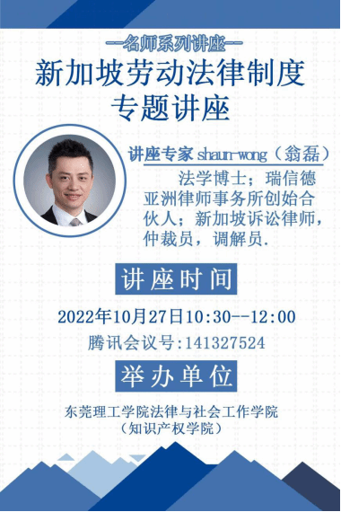 (知识产权学院)顺利举办了以“新加坡劳动法律制度”为主题的学术讲座。本次讲座邀请了瑞信德亚洲律师事务所合伙人、法律博士翁磊作为主讲嘉宾,翁磊博士是新加坡诉讼律师、仲裁员、调解员。参加本次讲座的人员有麻豆