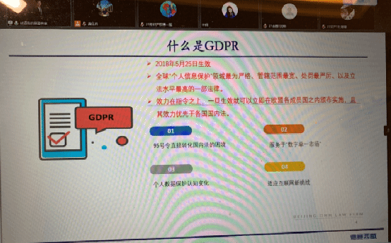 讲座中,林律师重点讲述了当今数据保护的重要性。他指出2018年5月25日生效的《欧盟通用数据保护条例》(GPDR),是目前全球”个人信息保护“领域最为严格、管辖范围最宽、处罚最严厉、以及立法水平最高的一部法律,在目前大数据时代,我们青年学生应该认真学习。此外,他还详细介绍了GPDR的适用范围、FPDR的概览,以及其监管和处罚。