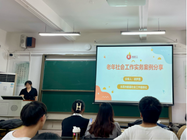 为了让同学们更加了解老年社会工作实务,了解老年社会工作的发展,老年社会工作课程老师林寒特别邀请了东莞市鹏星机构社工徐梦茵于2023年5月29日上午为2021级社会工作的学生分享其自身的机构经历和一些真实案例。