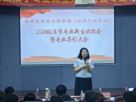 (知识产权学院)法律系举办了2024级法学专业新生欢迎会暨专业认知大会,旨在帮助新生更好地了解法学专业,促进师生间的交流与认识。本次活动由法律系副主任吉海荣老师主持,共130名师生参加本次活动。