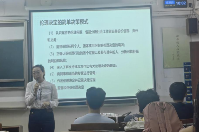 张应义老师的分享结合了青少年服务的场景,重点解析了 “服务对象自决与专业干预的平衡”“双重关系的边界把控” 等伦理难题,通过真实案例剖析了专业关系模糊、价值观冲突等问题的后果。同时她着重强调了包括保护生命、差别平等、自主自由、最小伤害、隐私保密等七大社会工作伦理原则,叮嘱同学们在社工实务中需要始终坚守这些伦理原则,坚持“伦理原则是社工执业的生命线”。