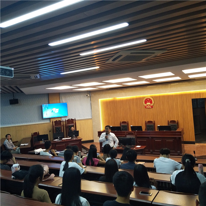 在模拟法庭举行了法社学院学生代表座谈会。夏能礼副院长主持本次座谈会,法学专业郑玉敏主任、社会工作专业成伟社工系主任、公共管理专业杨少星主任、教学秘书林锦照老师等参加了本次学生代表座谈会。