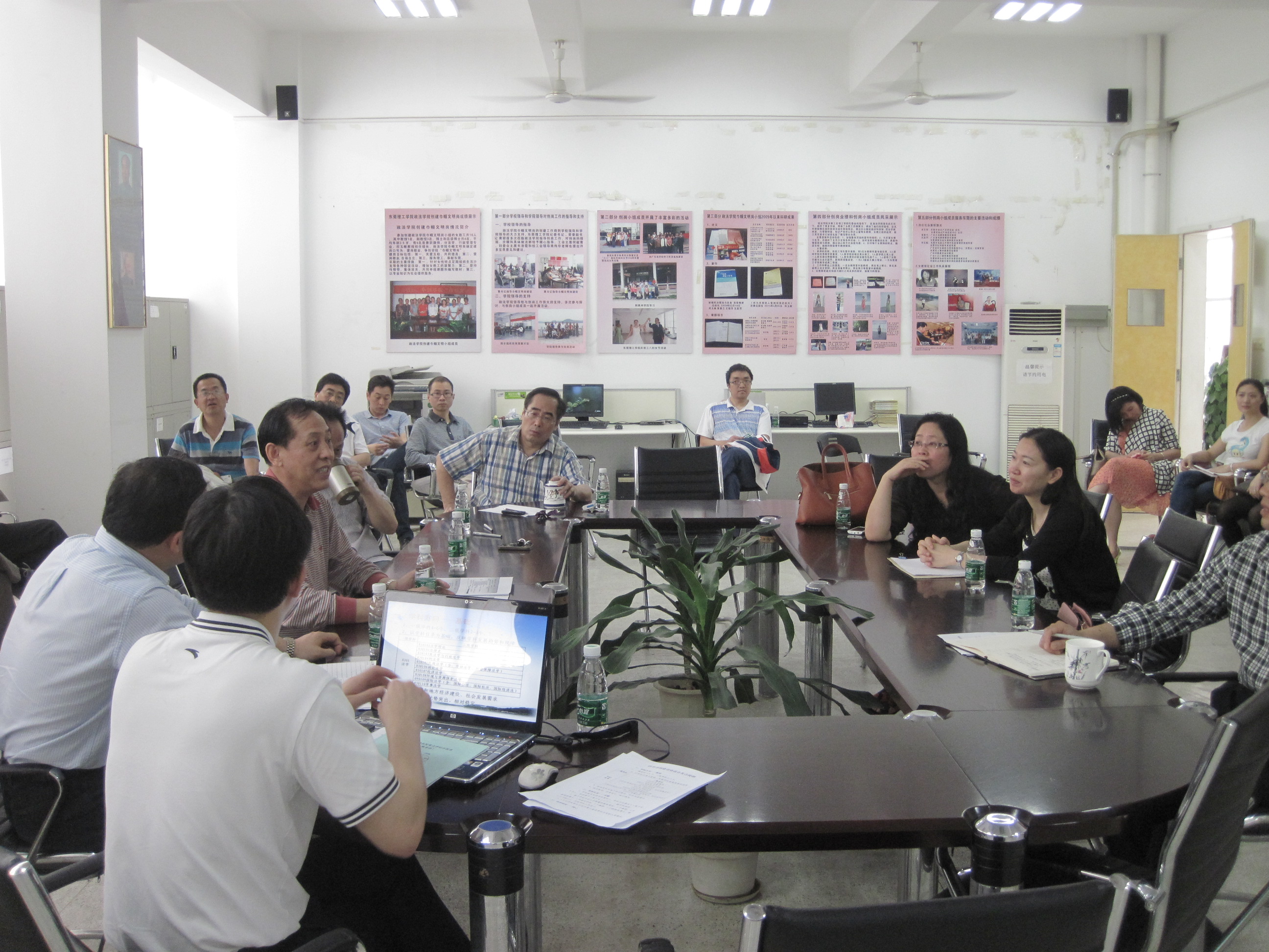 会上,学科建设办主任杨光教授对政法学院法学专业的学科建设从学科方向、学科队伍、科学研究、人才培养、工作条件、学术交流、管理工作等七个要点进行说明讲解,对法学学科建设提出指导性意见,并与该院教师进行了深入的交流和探讨。