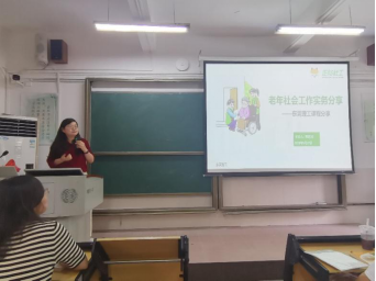 为了增强同学们对于老年社会工作的理解;营造社会工作专业学术氛围;引导同学们掌握社工三大手法在养老服务中的应用,提升同学们关于老年社会工作的实践能力。老年社会工作课程老师林寒特别邀请陈彩玲社工为2021级社会工作专业学生分享与自身相关的老年社会工作实务经历。