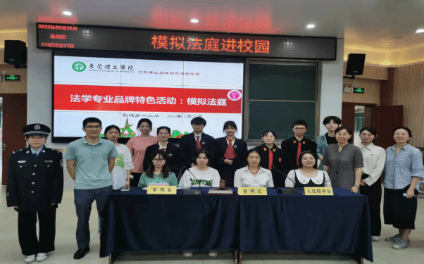 (知识产权学院)的品牌特色活动,法学专业的“模拟法庭”活动已经形成了一套走出去引进来的组织活动机制。与地方司法行政机关常态化协作,以模拟法庭方式开展普法宣传,已经成为了法学专业服务地方法治的重要形式。为东莞多个中小学、社区、工厂开展法治宣传,服务地方提升地方普法的感染力和实效性,是一个具有较强的引导示范力和可复制性的法治宣教优秀品牌活动。