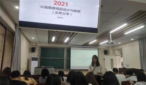 从课堂延伸到课外。袁美芝老师以分享互动式的教学模式,让同学们对《公益慈善》、《社会保障学》课程有了进一步的了解,让大家在掌握理论知识的同时对公益慈善以及社会保障领域有了直观的洞悉和了解。