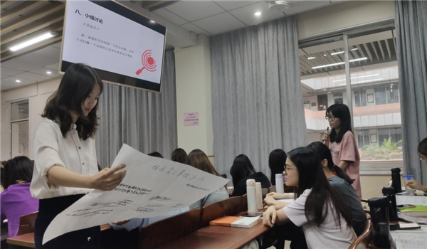 在讨论与互动环节,同学们积极主动参与、畅所欲言,用手上的笔和纸张撰写出了自己小组总结讨论出来的公益项目,通过课堂展示让更多的同学了解到公益慈善项目的新点子。
