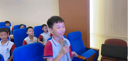 在此次宣讲现场中,黄驰同学与高埗世外实验小学学生积极互动,同学们踊跃参与,屡次发言,活动气氛热烈。