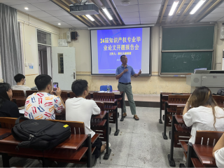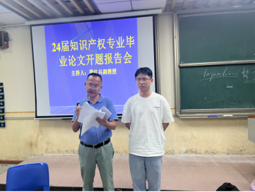知识产权系主任龚红兵教授为24届知识专业的学生举行了毕业论文开题报告指导会。本次指导会采用线下与线上相结合的方式,通过腾讯视频同时进行,吸引了众多24届知识产权专业积极参与。