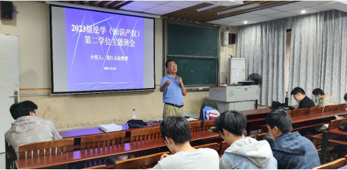 2023年11月20日下午,2023级法学(知识产权)第二学位主题班会在莞城校区5301教室成功举行,知识产权系系主任龚红兵老师以及2023级法学(知识产权)(第二学位)1、2班的同学们共同参与了本次班会。