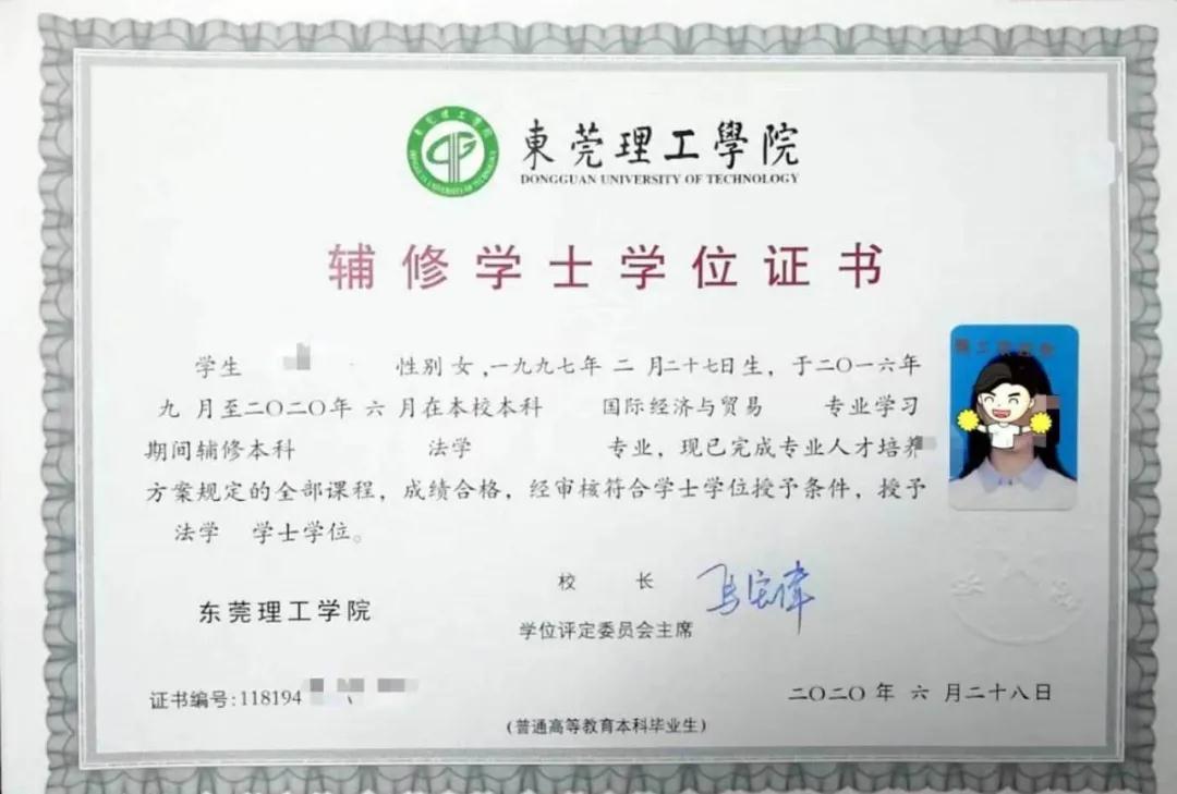 辅修学士学位证书――法学学士学位证书。