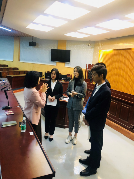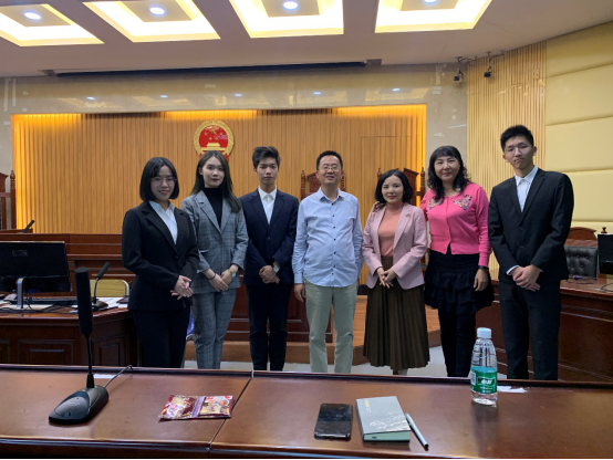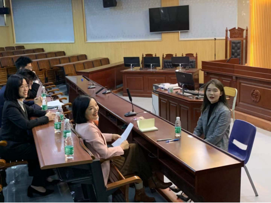 莞城校区模拟法庭为19级法学卓越班的卢柱荣、伍尚杰,19级法学一班的黄子茵及20级知识产权(专插本)二班的张君瑶四位参赛同学举办赛前再一次精细化的培训。