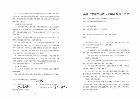与广东法制盛邦(东莞)律师事务所、东莞市版权纠纷人民调解委员会就学生实习、社会实践事宜达成合作。麻豆