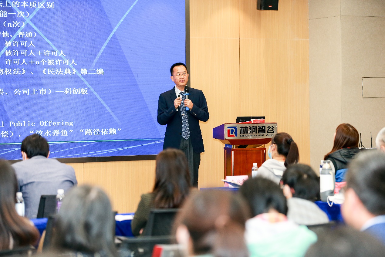 (知识产权学院)副教授龚红兵从法学的角度向我们讲解知识产权运营中法律问题的核心——转让与许可,介绍了知识经济时代的主要特点,从科技成果转让、许可和作价投资等方面讲解了如何开展知识产权运营,并从《民法典》的角度介绍了知识产权运营的法律根基——合同法的基础知识,运用实际案例剖析知识产权运营中有关合同法的法律问题。
