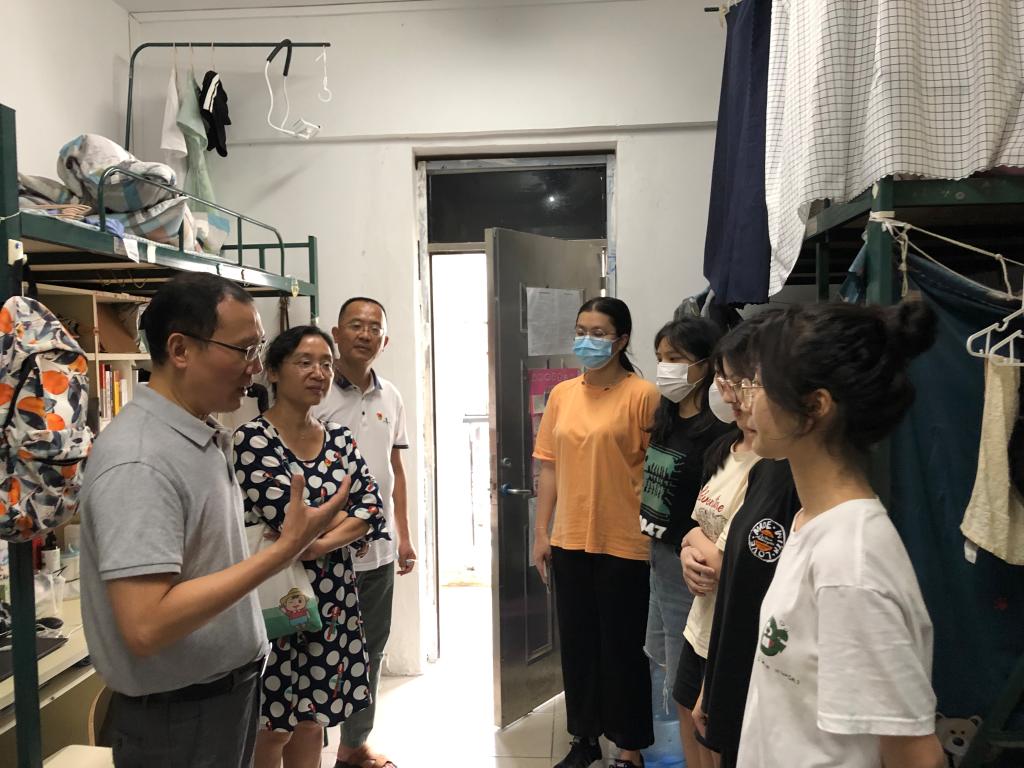 随后杜书记深入学生宿舍详细了解学生的学习情况、生活环境,并对全体21知识产权班学生提出殷切希望:首先叮嘱同学们要继续严格遵守社区管理规定,注意消防安全、用电安全;在新学期继续养成良好生活习惯,建设文明宿舍,共同构建和谐学生社区。还与同学们进行亲切交流,认真询问学生期末备考进度,鼓励同学们要合理规划,认真复习,提升学业成绩。