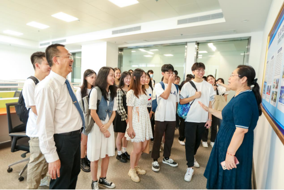(▲全体师生和文总、叶先生在G4楼下合影)