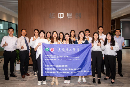 (▲师生在广州市知识产权法院东莞市中级人民法院东莞巡回法庭一楼合影)