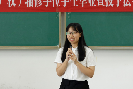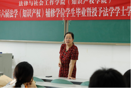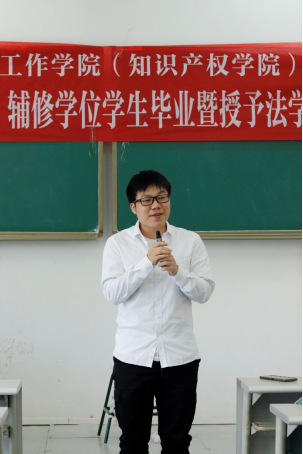 郑院长首先总结了法学(知识产权)辅修专业的发展历程,表达了对本届毕业生的殷切希望与美好祝愿。郑院长表示,辅修法学(知识产权)的历届毕业生里有许多优秀人才,在法学(知识产权)辅修班中的学习对他们的人生都产生了或多或少的积极影响,希望同学们向优秀的师兄师姐学习,结合自己这几年所学的知识,充分运用自己的聪明才智,找到理想的工作,找到自己的人生方向,实现自己的人生价值。