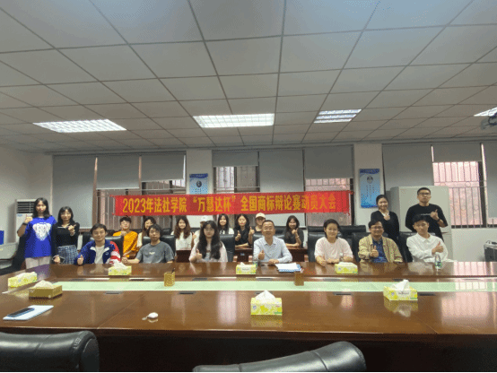 为了鼓励商标辩论赛参赛队员积极准备,营造良好的备赛氛围,2023年3月22日下午,法社学院知识产权系主任龚红兵老师、杨婧老师、胡庆乐老师以及商标辩论赛的全体参赛队员在莞城校区5201会议室召开了2023年法社学院“万慧达杯”全国商标辩论赛动员大会。