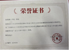 2023级社会工作专业硕士研究生张可、程诗雅以及2024级社会工作专业硕士研究生邓琼、廖钰莹在分论坛上进行了发言。其中,邓琼的《生态系统理论视角下社会工作介入妇女反家暴服务的困境及对策研究》一文荣获研讨会征文大赛“三等奖”。